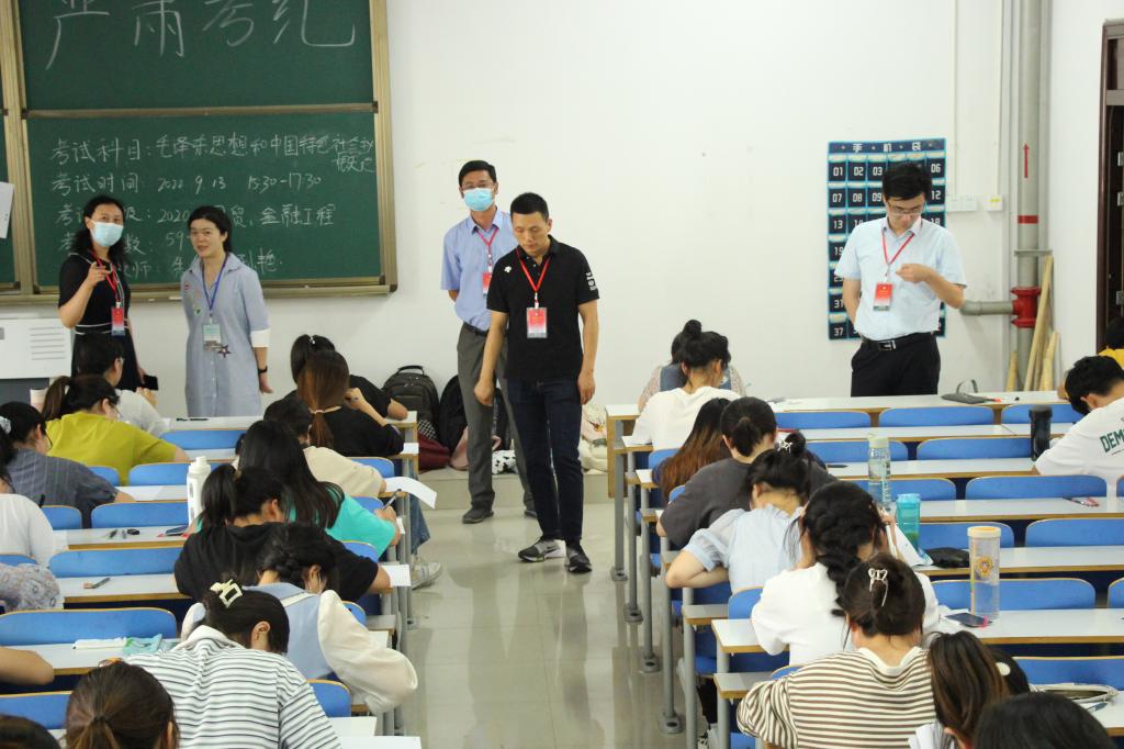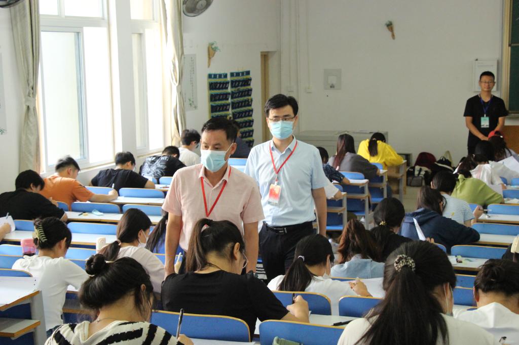 2022年9月13日,2021-2022学年第二学期期末延考考试正式开始。经理彭荣胜及其他领导班子成员一行深入教九楼105、106,社科楼415、416等考场进行现场巡视。