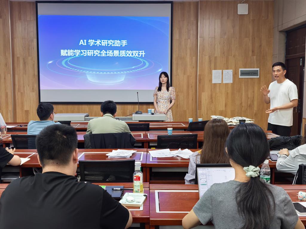 李依洁系统阐释了知网全学科知识服务核心引擎“华知大模型”的技术优势,并重点围绕研究生科研需求,现场演示了CNKI AI学术研究助手的核心功能:一是AI学术检索, 支持自然语言跨库精准检索6亿+文献,高效响应如“清华大学2024年人工智能领域北大核心文献”等复杂指令,助力研究生快速锁定前沿资料;二是AI辅助研读,一键提炼文献精要、智能解图、延展问题启发,助力研究生高效破解商科案例研究的理解壁垒,提升文献消化效率;三是AI辅助创作, 提供选题推荐、论文扩写、改写及“资料研参”跨场景创作支持,为研究生的论文构思、撰写与优化提供强大工具;四是苹果树智能体, 深度定制文献综述、学术趋势分析等科研任务链,赋能研究生系统性开展研究规划与执行。讲座现场互动热烈,研究生们尤其就经济管理数据挖掘、高效文献管理与论文写作等切身科研场景,与专家进行了深入交流与探讨。
