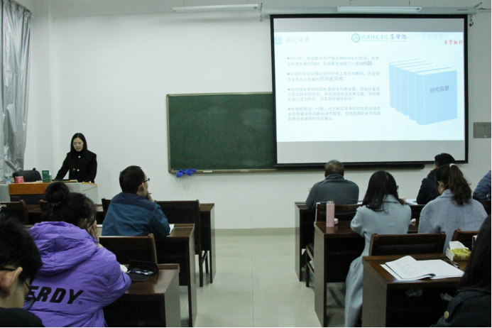 11月30日下午,伟德国际victor1946在经管楼303教室举行2021年学术型研究生学术论坛答辩会。本次学术论坛由上官绪明、孔栋、李俊等教师担任评委,2021级全体学术型研究生参加旁听。