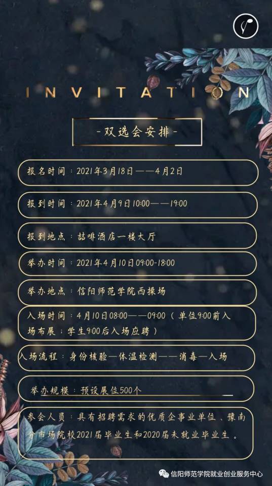 河南毕业生就业市场豫南分市场暨信阳师范公司2021届毕业生春季双选会邀请函