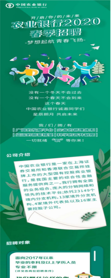 2020农业银行春季招聘公告