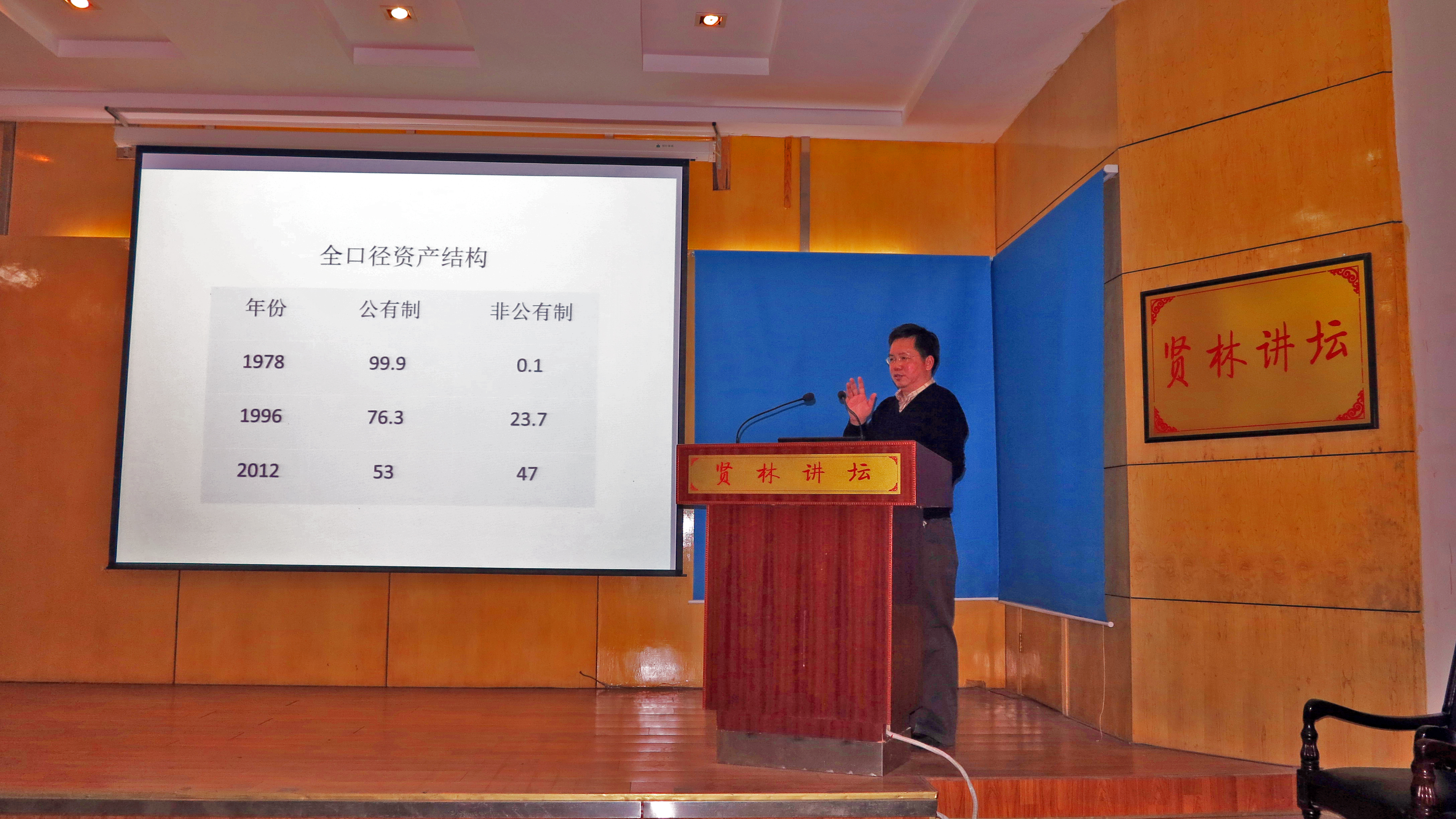 受聘仪式后,胡家勇研究员作了题为“中国新一轮改革”的学术报告。报告中,胡家勇研究员从“市场在资源配置中起决定性作用的理论创新”谈起,介绍了市场在经济发展长河中的重要作用,论述了在中国经济建设中担负的重要使命,详细分析了新一届政府深化改革采取的改革审批制度、购买公共服务、完善金融体制等一系列措施;阐述了上海自贸区的“负面清单”和“非禁即入”的现象。最后,胡家勇研究员认为,深化经济体制改革的重点在于国有经济的改革,应该充分利用混合经济的“公”与“私”、“市场”与“计划”两方面的优势来增强我国经济的活力。