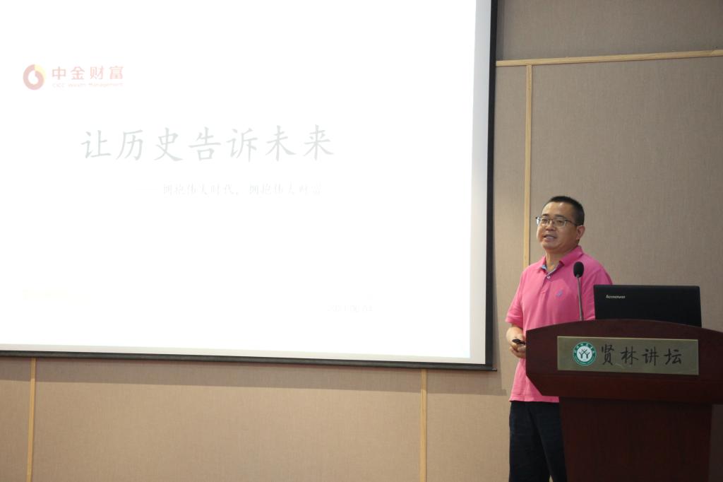 6月4日,受伟德国际victor1946邀请,中国中金财富证券河南分公司副总经理、信阳营业部总经理阮争在贤林讲坛做了题为“让历史告诉未来——拥抱伟大时代,拥抱伟大财富”的报告,本次报告会由伟德国际victor1946杜辉教授主持,公司二百余名师生参加了报告会。