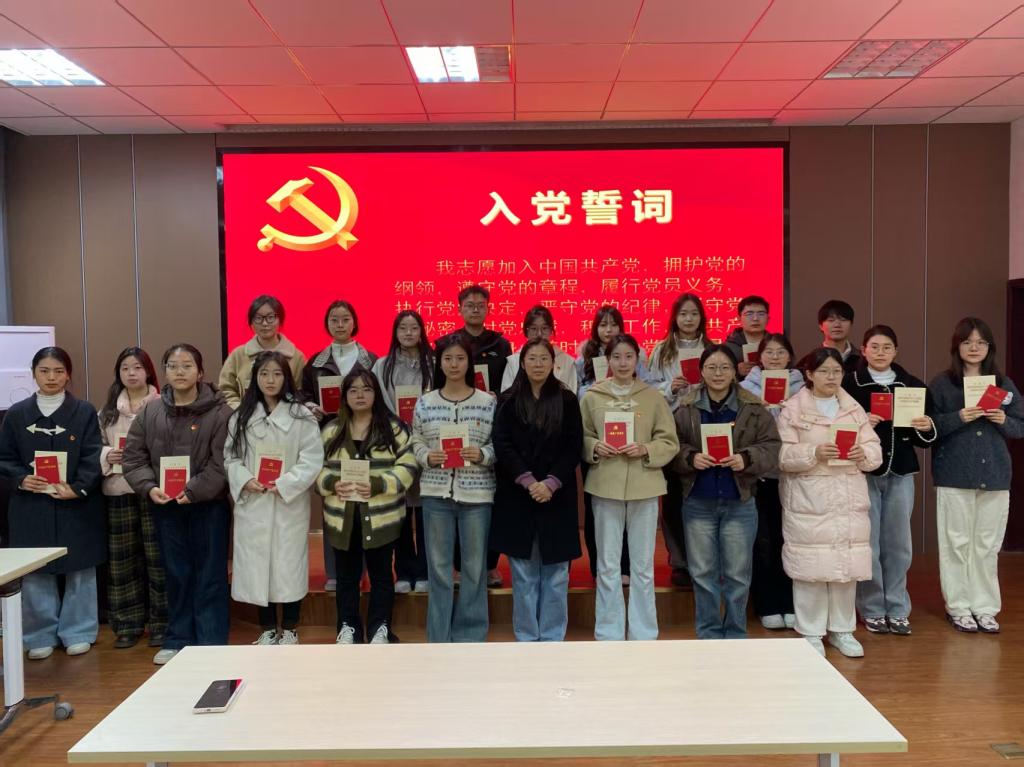 仪式在雄壮的国歌声中拉开序幕,全体人员肃立致敬。韩月华首先宣读新发展党员名单。随后,韩月华带领全体新党员面向党旗,高举右拳庄严宣誓。“我志愿加入中国共产党……”铿锵誓言回荡全场,镌刻在每一位新党员心中,是对初心的宣告,更是对使命的承诺。