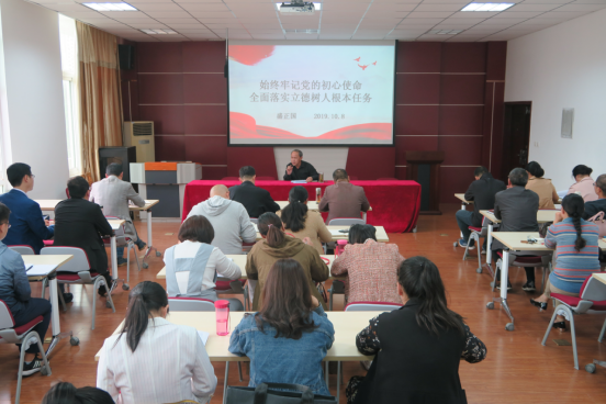 公司党委书记盛正国以“始终牢记党的初心使命,全面落实立德树人根本任务”为题,在经管楼310会议室为全体教工党员做了一场内容丰富的党课辅导报告。盛正国分别从初心和使命是中国共产党人的革命本色和根本动力,为党育人、为国育才是教育工作者的神圣使命,以及守土有责、久久为公,全面落实立德树人根本任务三个方面深入浅出的阐述了党员同志应如何守初心、担使命。他讲到,作为一名共产党员,应从坚持政治统领、加强理论武装、注重价值引领、做好言传身教等方面严格要求自己。