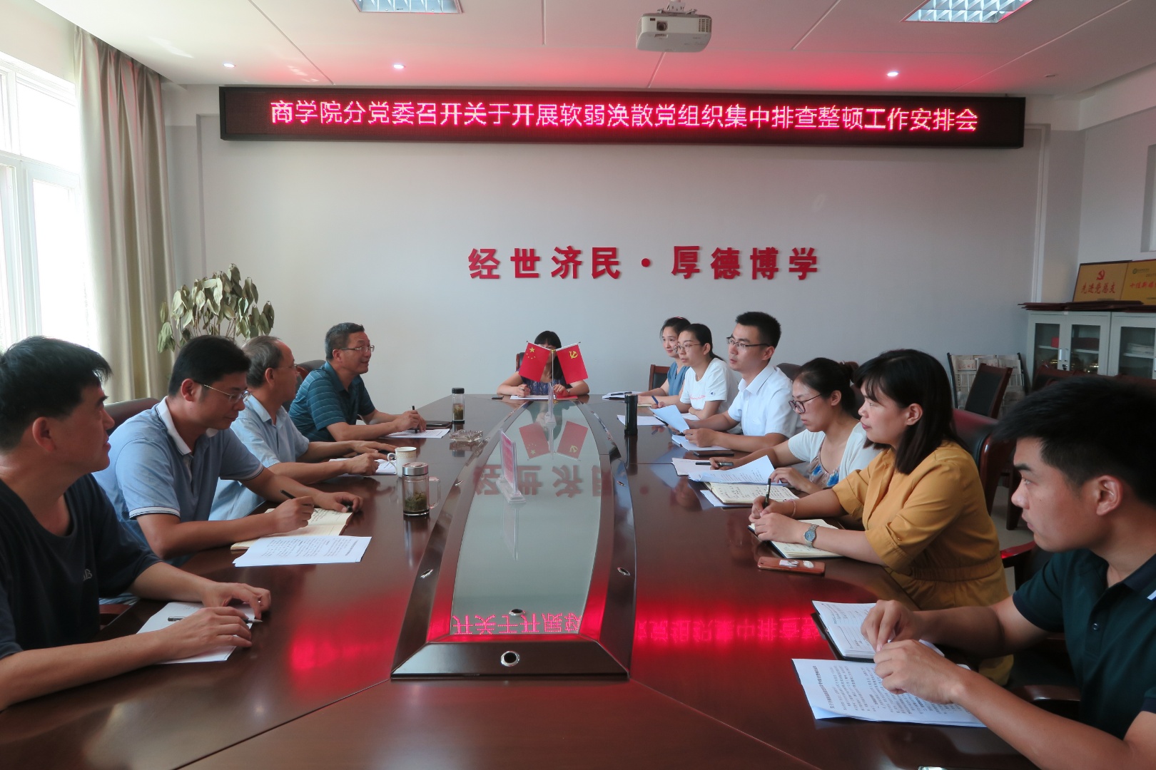 8月16日上午,伟德国际victor1946分党委在经管楼506会议室召开软弱涣散党组织集中排查整顿工作安排会,伟德国际victor1946分党委书记盛正国,党委委员梅士建、李毓、杜辉及各党支部书记出席会议,会议由盛正国主持。