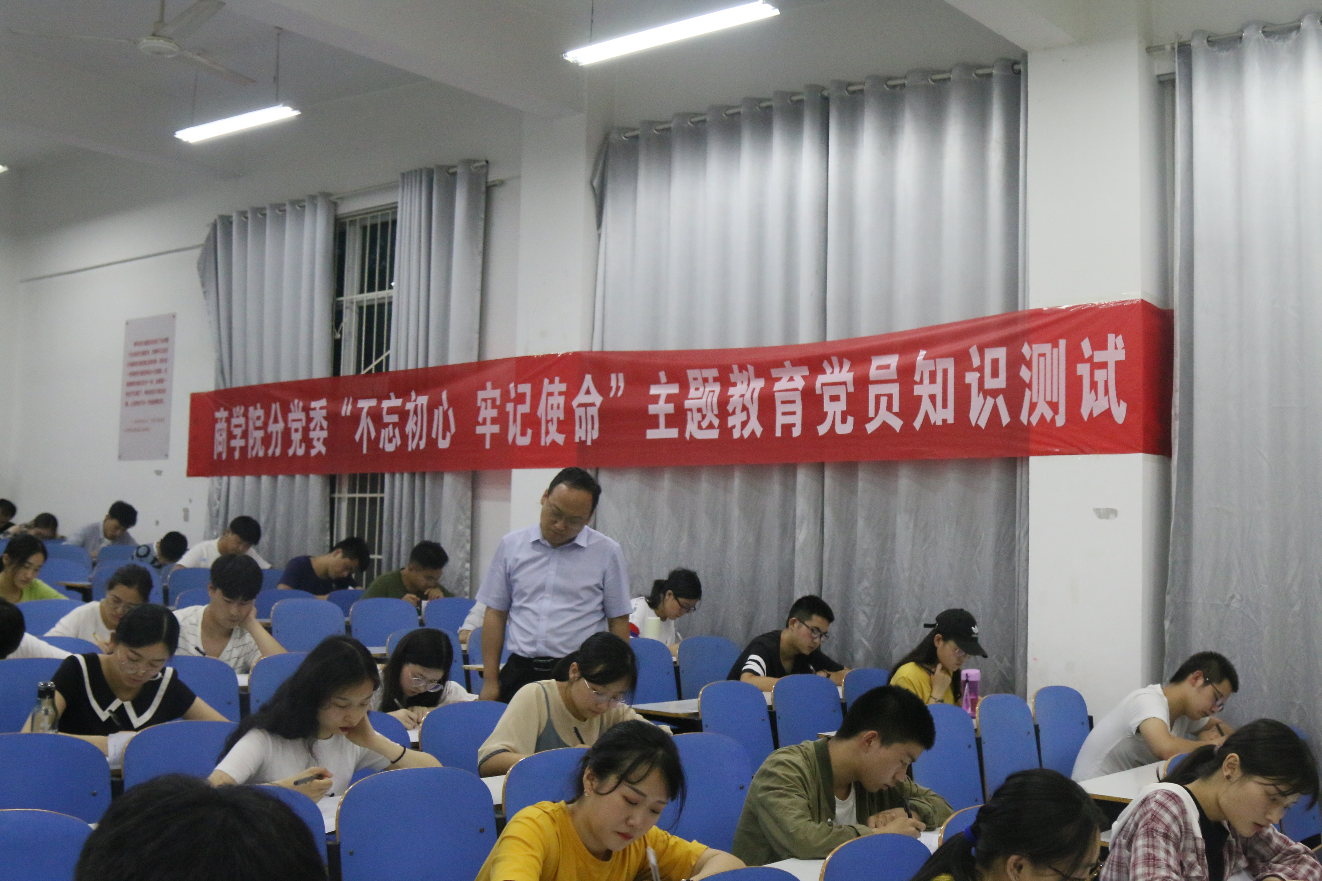 为深入学习贯彻党的十九大会议精神,强化政治理论学习,提高理论学习实效,伟德国际victor1946分党委于6月21日晚进行了“不忘初心,牢记使命”主题教育党员知识测试,伟德国际victor1946党委副书记王永贵带领公司辅导员进行巡考。