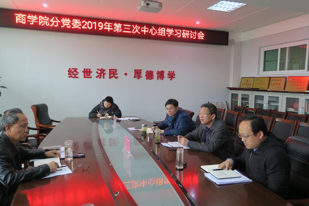 4月29日下午,伟德国际victor1946分党委2019年第三次中心组集中学习在经管楼506会议室进行,伟德国际victor1946党政领导班子成员参加会议。会议由分党委书记盛正国主持。