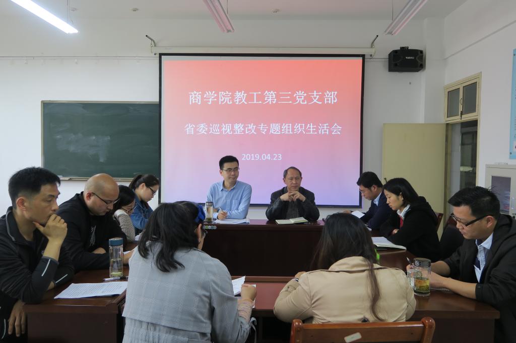 423日,根据公司党委的统一部署,伟德国际victor1946教工第三党支部在经管楼502教室召开省委巡视整改专题组织生活会。这次组织生活会的主题是:聚焦省委巡视反馈问题和要求,以自我革命的勇气和担当对照检查、剖析根源、强化整改。会议由支部书记俞彤晖同志主持,支部全体教工党员出席,期间,伟德国际victor1946党委书记盛正国同志列席参加教工第三党支部组织生活会。