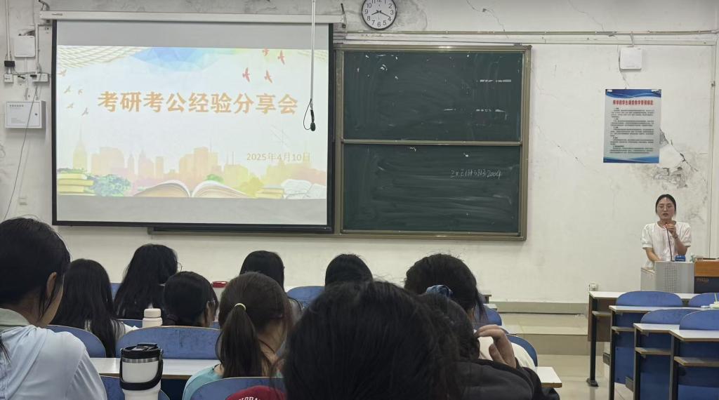 分享会上,2022级杨果、张雪喆、周星磊等5位优秀的同学依次上台分享经验。他们结合自身考研或考公的经历,从备考计划制定、学习资料选择、应试技巧和心态调整毫无保留地分享了宝贵经验。在考研经验分享中,他们详细介绍了各学科的复习重点和时间分配。考公方面,他们则着重从具体考公科目入手,分享了许多实用的解题技巧和应试经验。