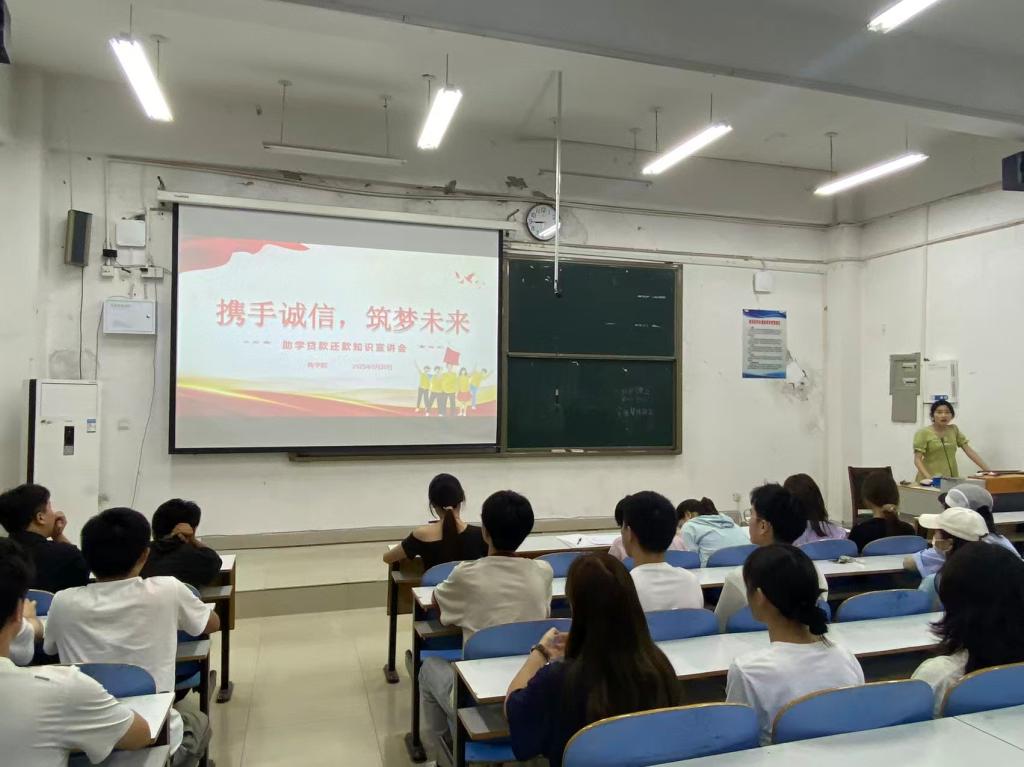 宣讲会上,袁泉详细解读了国家助学贷款的还款政策,涵盖还款时间节点、还款方式、利息计算方法以及逾期还款的严重后果等重要内容。同时,她还告知同学们今年及以前年度毕业的贷款员工,2025年内应偿还的国家助学贷款利息予以免除,本金经贷款员工自主申请可延期1年偿还 ,但员工需在规定时间内完成申请流程。会中,她同学们展示了按时还款对个人信用记录的积极影响以及逾期还款可能带来的诸如高额罚息、征信受损等不良后果。在互动环节,同学们就自己关心的问题踊跃提问,袁泉对此进行了耐心细致的解答。