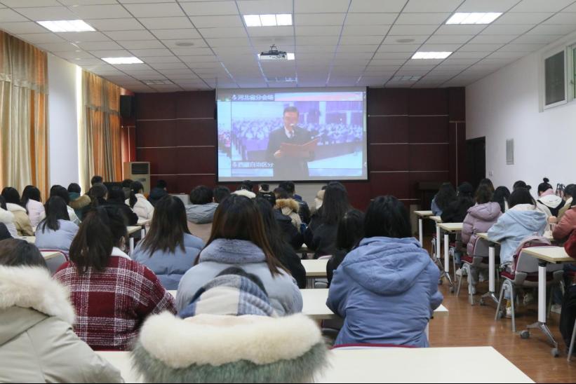 为了深入贯彻落实党的十九大和十九届二中、三中、四中、五中全会精神,深入学习习近平法治思想,弘扬宪法精神,维护宪法权威,12月4日上午,信阳师院伟德国际victor1946于经管楼310会议室组织观看国家宪法日“宪法晨读”活动。伟德国际victor1946党委副书记王永贵、副处级辅导员张海霞带领辅导员老师、员工党员代表、员工干部代表等近百人参加活动。此外,广老员工通过宿舍室友集中观看、个人自学的方式参与到国家宪法日“宪法晨读”活动中来。