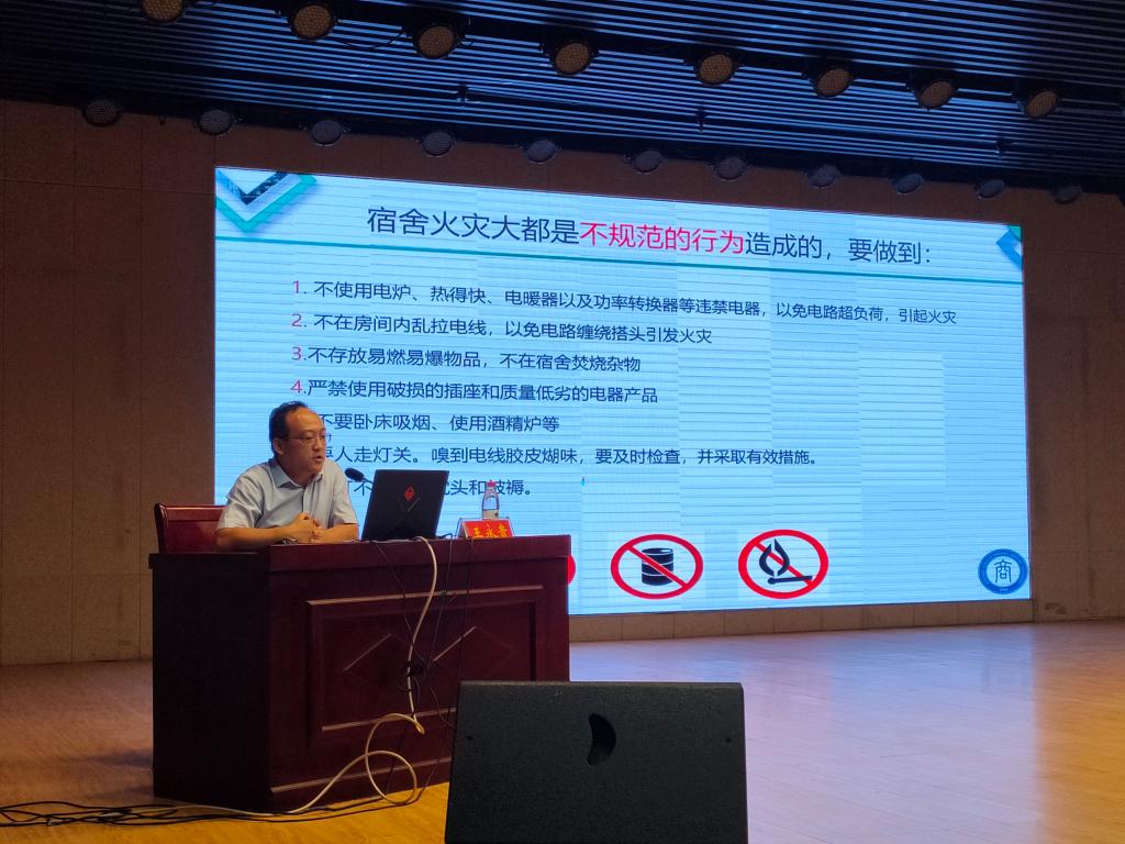 紧接着,王永贵老师为新生开展了一场精彩绝伦的入学教育系列讲座---校园安全篇。他针对老员工如何保护自己的人身、财产、生活、网络、心理安全,一一进行详细地讲解。同时,他还利用一些实际案例,指出高校员工安全工作的紧迫性和必要性,让在座的每一位新生都受益匪浅。