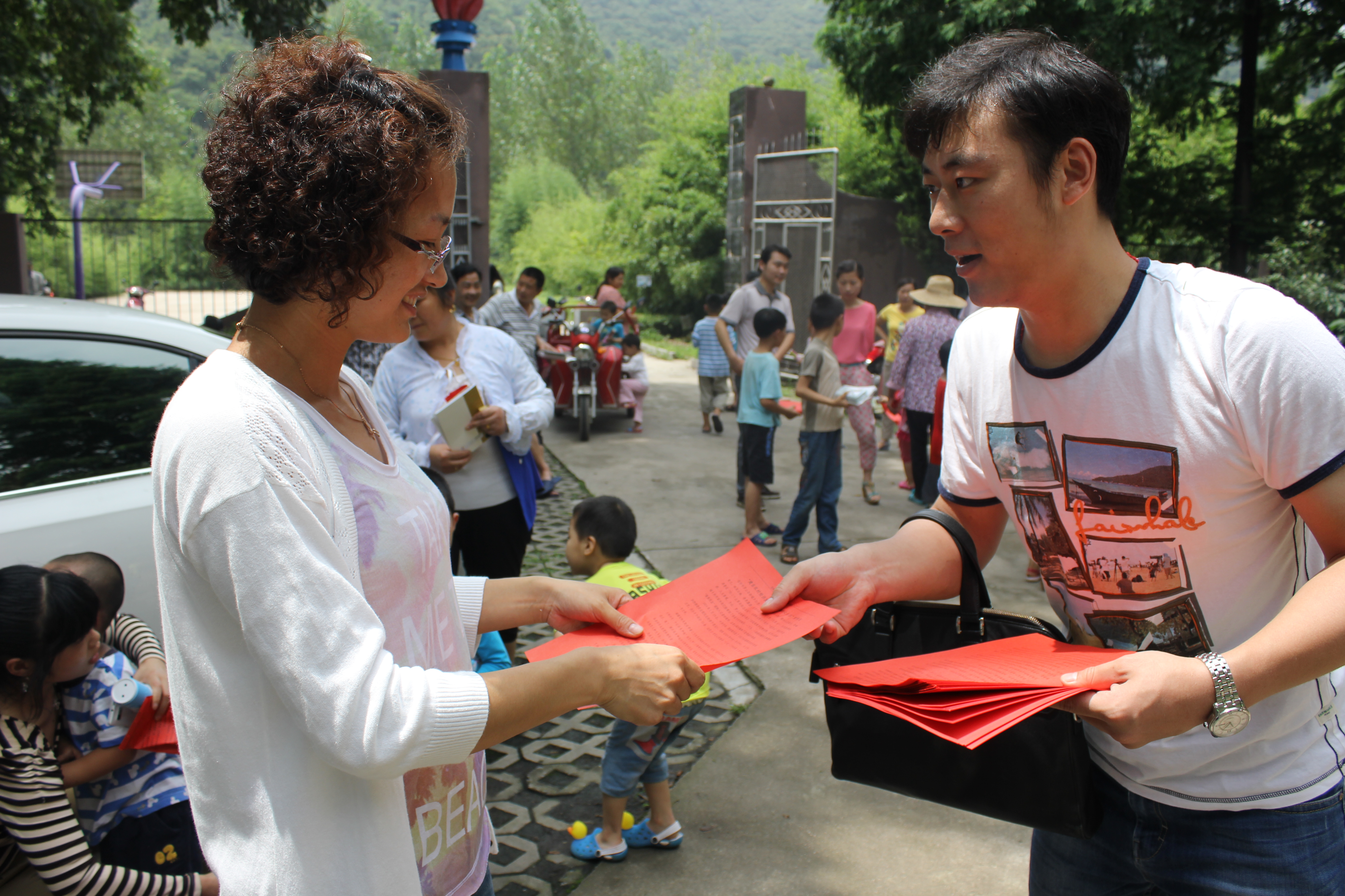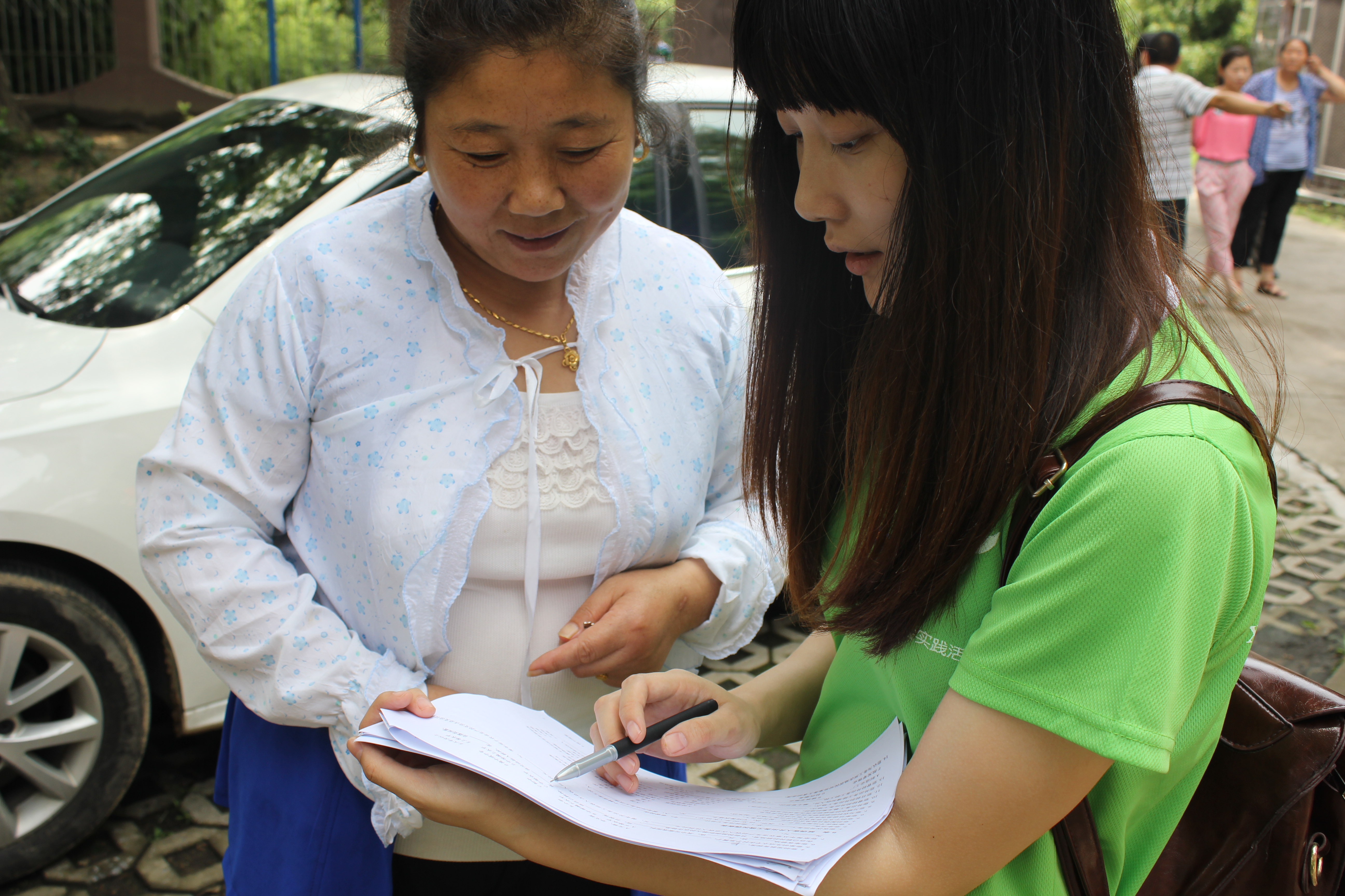 接着同学们分为两队,一队来到镇中心发放传单。传单由“此次活动的目的、国家对农村经济发展的政策解读、经济公司的发展历程与现状”三部分组成。同学们一边发放一边讲解,引来众人驻足倾听。部分群众不时插话询问,同学们耐心讲解。另一队进行问卷调查,调查由“当前家庭经济状况、家里劳动力的就业状况、生活中存在的问题、您对政府的建议”四部分组成,同学们指导着居民填写,不时深入询问。随后同学们将问卷调查的结果进行综合汇总,以便反映问题。
