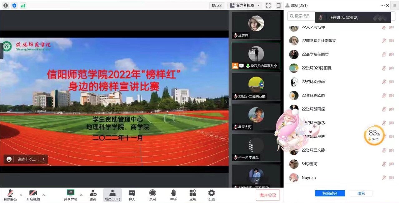 为进一步拓展员工资助工作的育人功能,充分发挥国家奖学金获得者、校园明星、自强之星等青年榜样的先进典型导向作用,12月2日下午,“榜样红——身边的榜样”主题宣讲活动通过腾讯会议的形式成功举办。伟德国际victor1946资助专员杨紫涵、地理科学公司团委副书记曹鹏鹏,及两院员工代表参加本次宣讲活动。老员工国家奖学金获得者张豪鹏、自强之星李德政、校园明星张清雯受邀进行宣讲。此次活动由梁亚龙主持。
