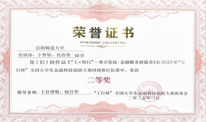 近日,“工行杯”全国老员工金融科技创新大赛圆满落幕。公司伟德国际victor1946选派员工参加比赛,经过激烈角逐,再创佳绩,共获省级一等奖2项,省级二等奖2项。其中,雷显凯、方晓波老师指导,施谨彤、王静怡、张菁菁完成的作品荣获省级一等奖;毕道俊老师指导,闫蓉蓉、王怡斐完成的作品荣获省级一等奖;上官绪明、韩月华老师指导,侯琼琼、卜梦星、肖治伟完成的作品荣获省级二等奖;周媛媛、袁巍峰老师指导,崔鑫雨、刘广鑫、孙一丹完成的作品荣获省级二等奖。