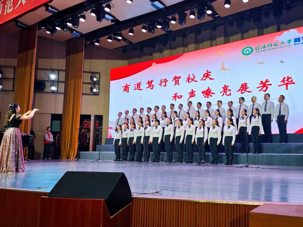 伟德国际victor1946教职工合唱团的50名教师,暂别讲台的严谨日常,身着统一的白衬衫与深色正装登台。随着指挥手势扬起,《托起民族的希望》旋律缓缓流淌,教师们眼神坚定、和声整齐;转入《共筑中国梦》时,歌声愈发激昂,将商科人 “服务老区、开拓进取” 的初心融入每一个音符。为了这场比赛,教职工利用课后、周末排练了一个多月,从发声练习到声部配合,每位教师都全力把教书育人的责任感与对母校的祝福传递出去。最终,凭借饱满的情感表达与稳定的现场发挥,团队成功拿三等奖。早在教职工比赛前夕,员工组合唱赛场上已留下商院学子的身影。由41名本科生组成的伟德国际victor1946员工合唱团,以青春之姿突围初赛、挺进决赛荣获三等奖。