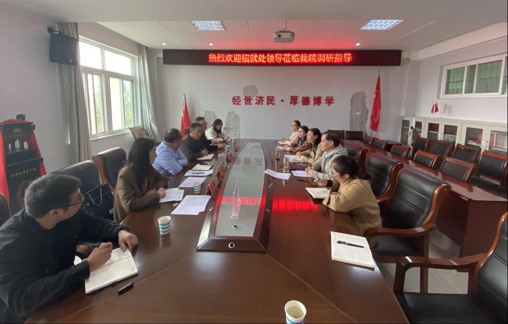 10月28日,人才招聘处处长赵明民、副处长王松亭、张楠带领人才招聘处工作人员来公司调研指导招生与就业创业工作,公司经理彭荣胜、党委副书记张海霞、就业秘书黄亚俊等相关人员参加会议。