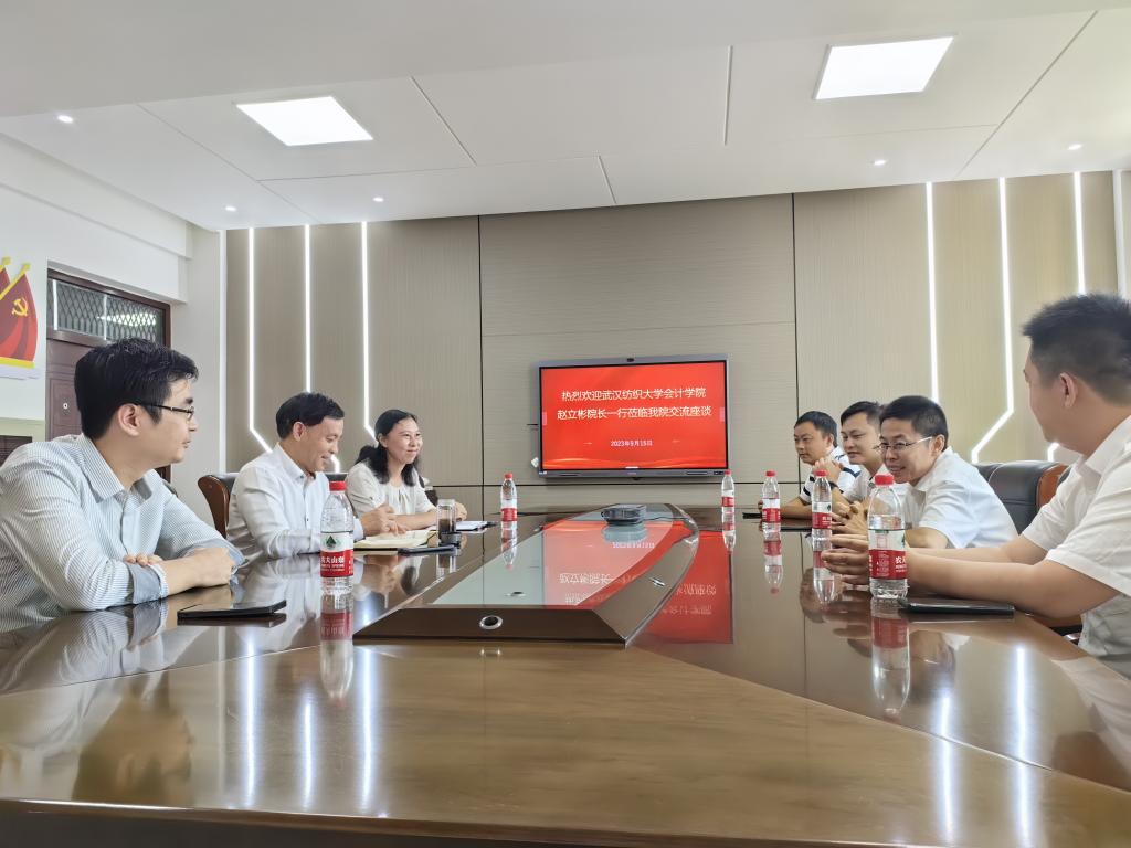 9月15日上午,武汉纺织大学会计公司经理赵立彬、研究生导师组组长任俊霖、学科竞赛中心主任张座铭、办公室主任林文等一行来公司考察交流,公司经理彭荣胜、副书记张海霞、副经理俞彤晖等陪同考察座谈。