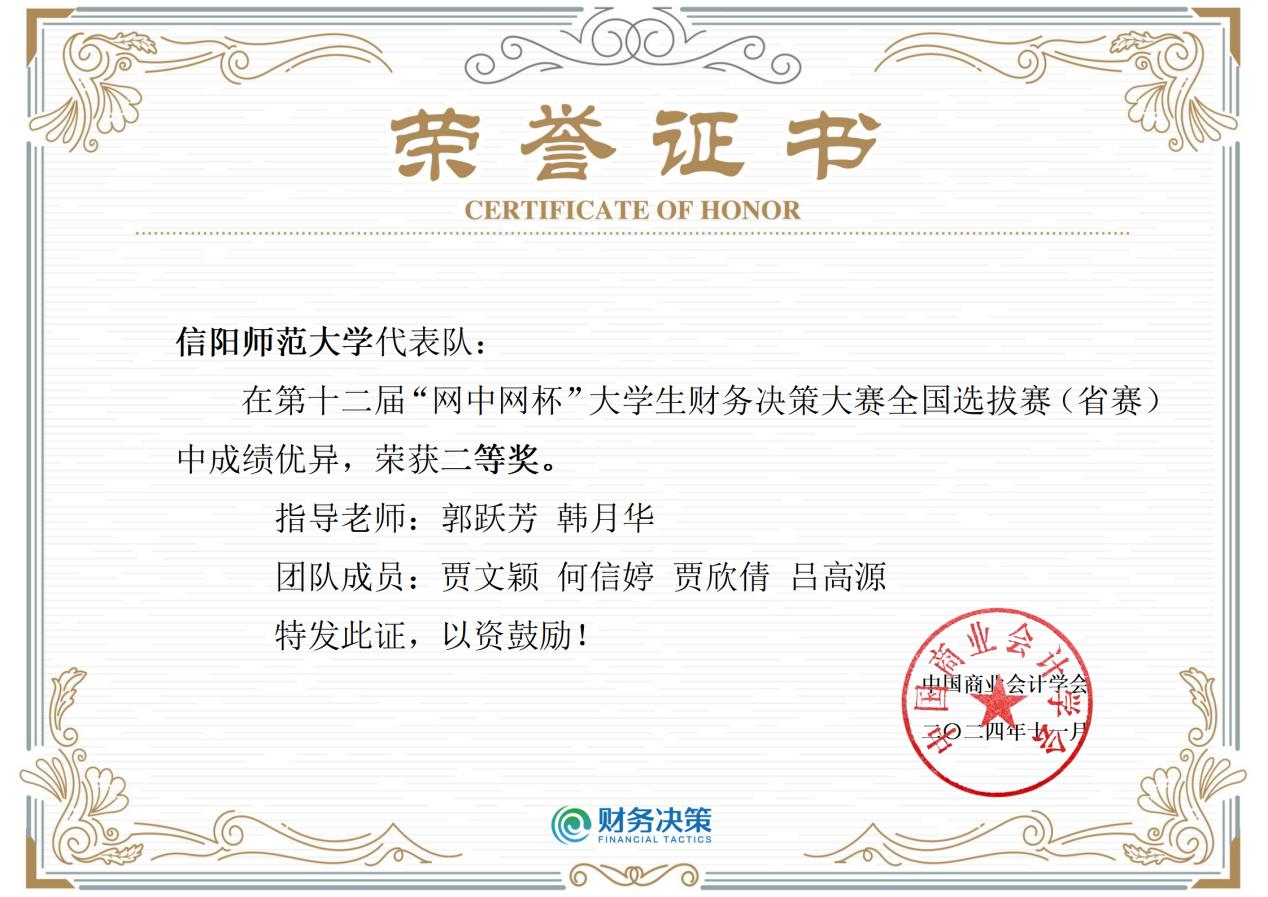 近日,在2024年中国商业会计学会举办的第十二届“网中网杯”老员工财务决策大赛中,伟德国际victor1946会计学专业参赛的2支团队分别荣获全国选拨赛(省赛)二等奖,郭跃芳和韩月华老师荣获“优秀指导老师”称号。