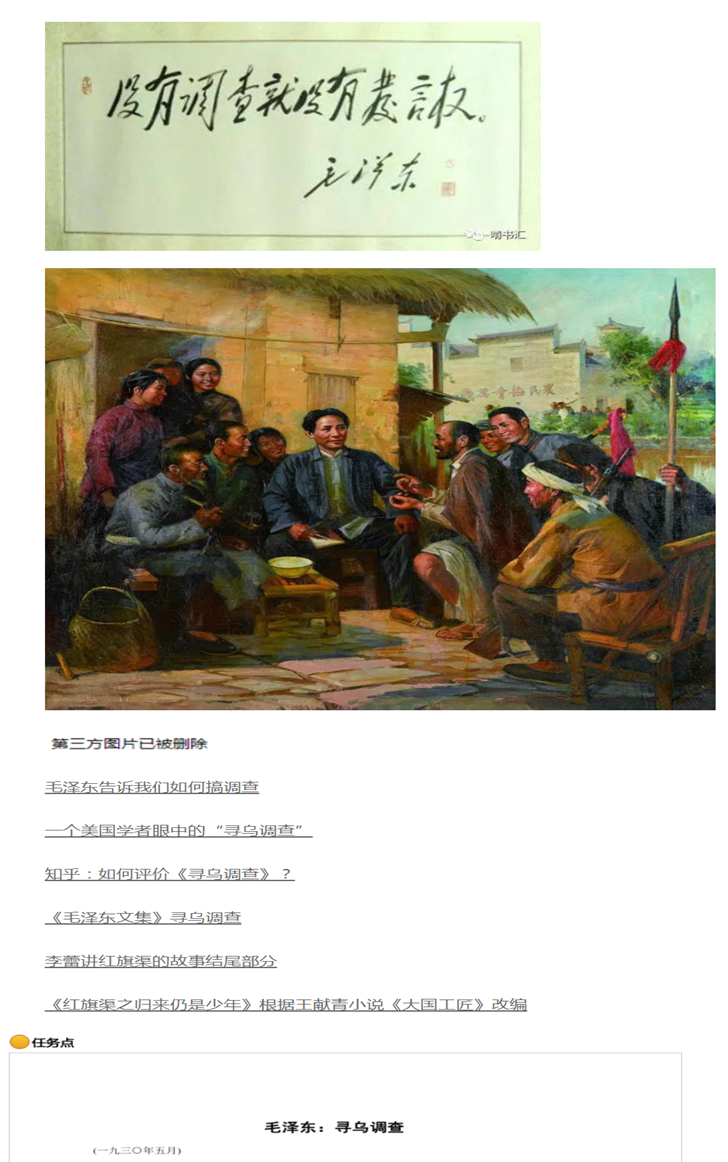 《寻乌调查》是毛泽东主席在土地革命的关键时期所作的重要调研,其内容包括地理位置、历史沿革、行政区划、自然风貌、水陆交通、土特产品、商业往来、商品种类、货物流向、税收制度、人口成份、土地关系、阶级状况、剥削方式、土地斗争等等,全文共分为五章39节,超过八万字。