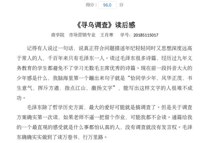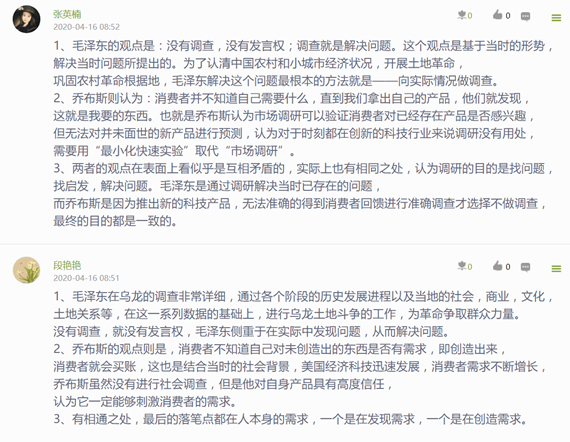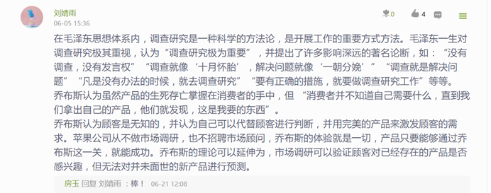 自2020年4月开始,《寻乌调查》学习分别在信阳师范公司伟德国际victor1946市场营销专业2017级(55人)、2018级(37人)及信阳公司2018市场营销本1班(56+辅修4人)的《市场营销策划》课程内进行实施,取得了一定的成效。2所公司3个教学班的全部152名员工都按照要求提交了《寻乌调查》读后感及相应市场调研报告。
